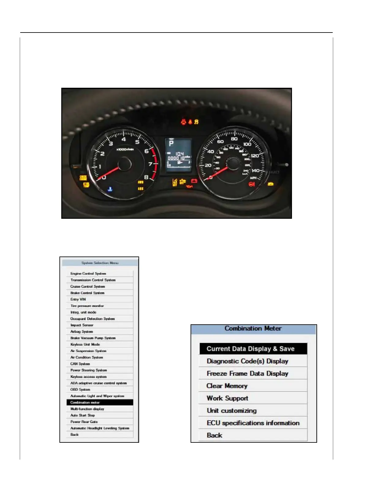 System Selection Menu Combination Meter Menu