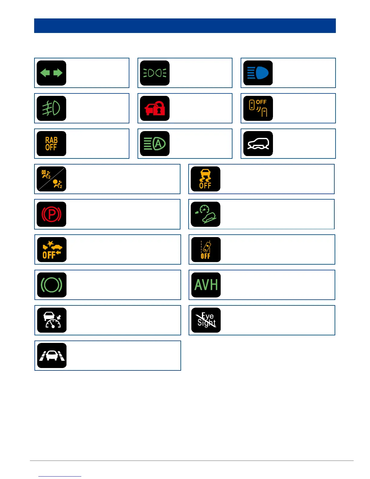 The following indicators show the current status of your car. Refer to your Owner’s Manual