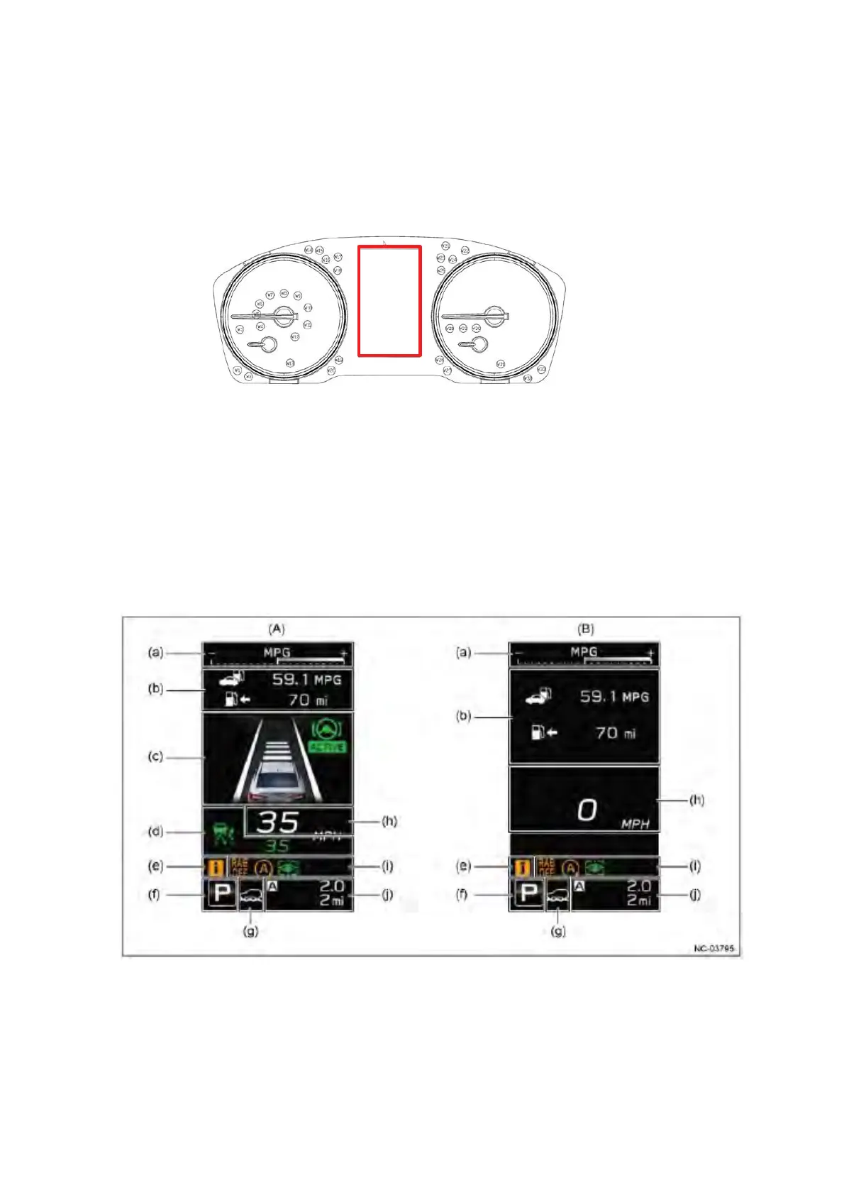 㻌 In addition to driving conditions and alerts displayed when EyeSight is in use, the multi-