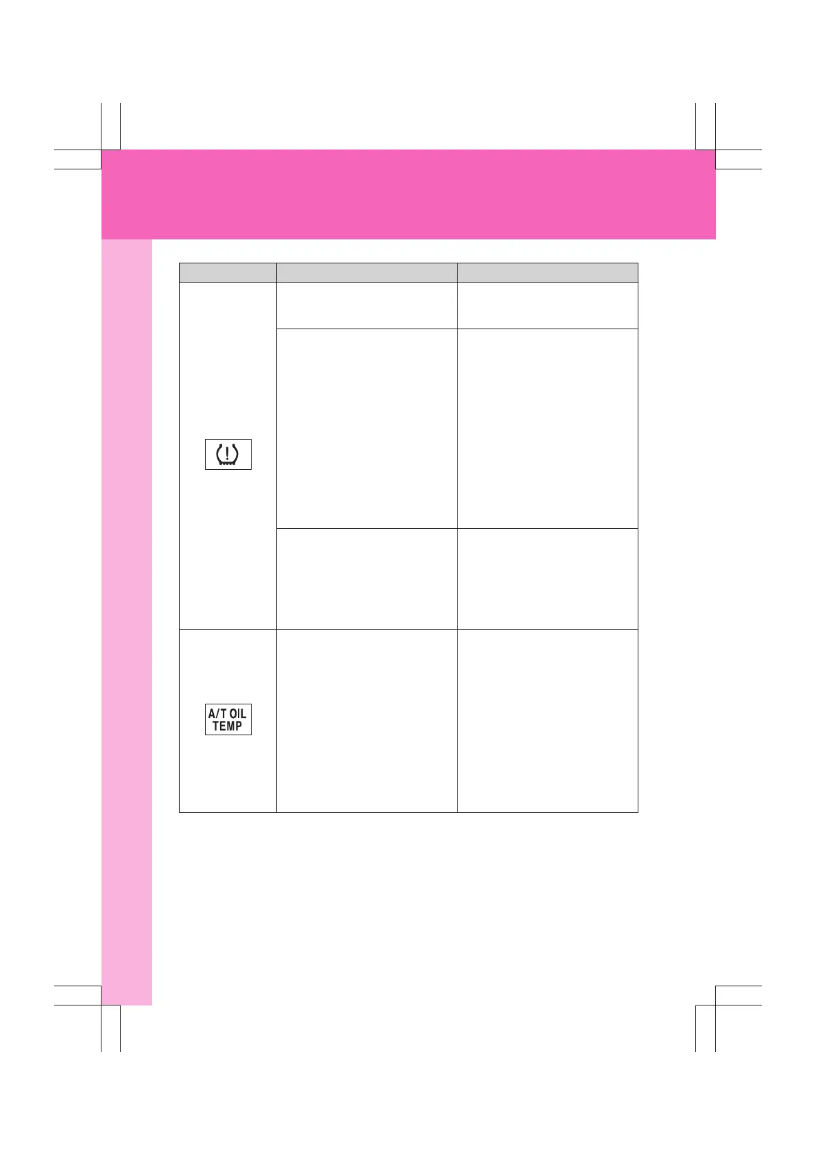 Warning light Warning light/Details Correction procedure