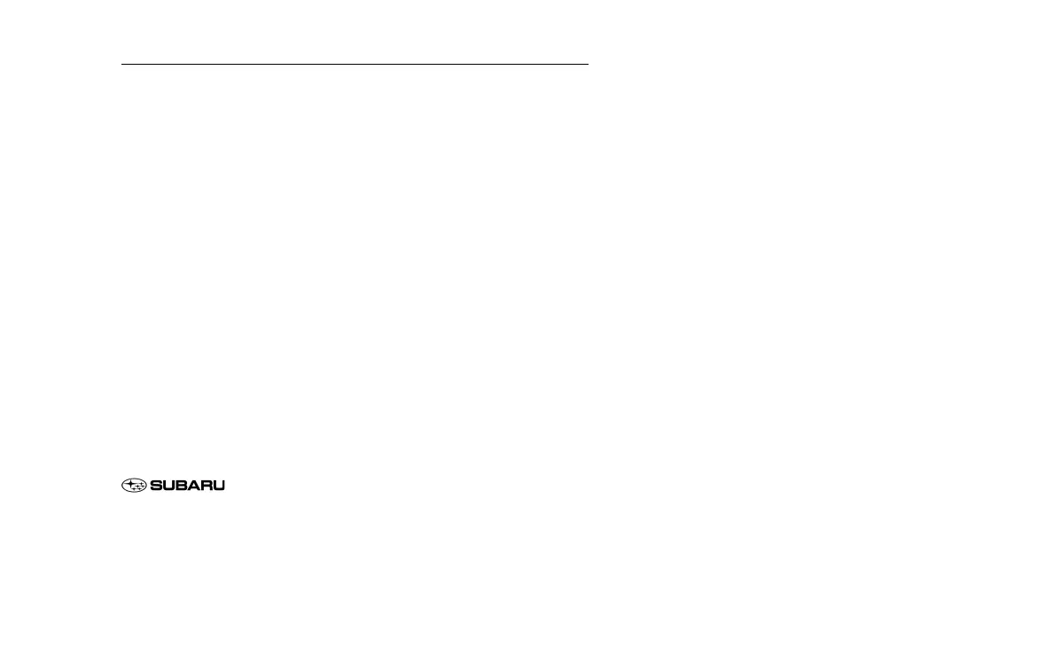 Congratulations on choosing a SUBARU vehicle. This Owners