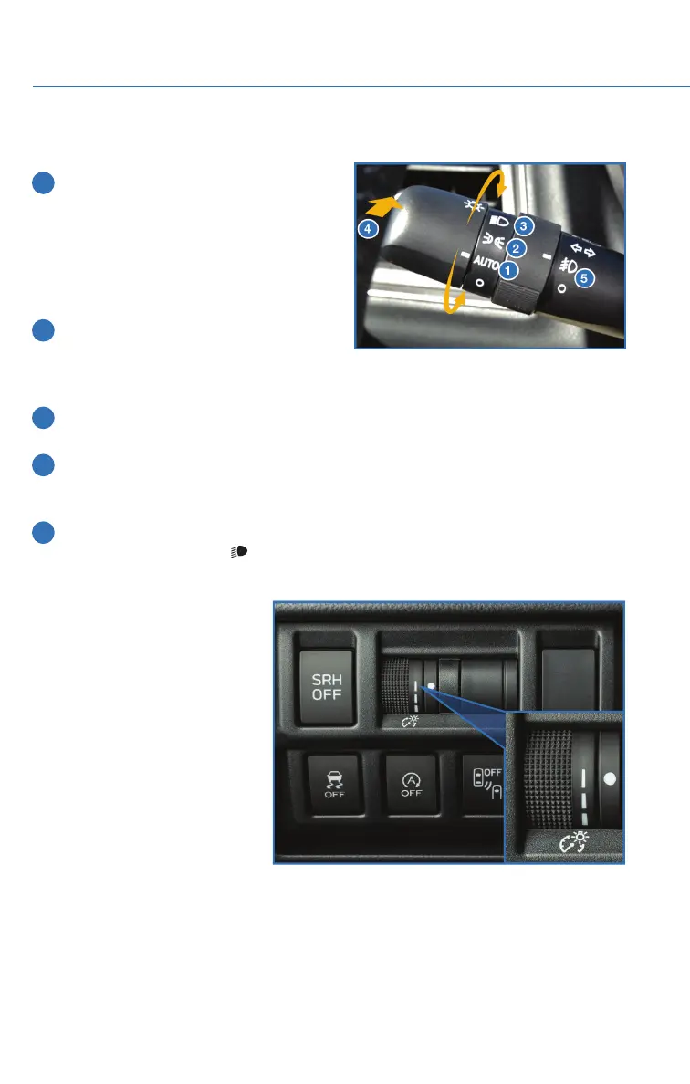 5 Fog Lights: If equipped, rotate the dial to turn on the fog lights when the headlights