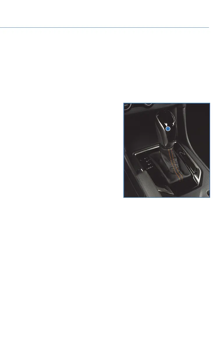 the “D” position into the “M” position to select manual mode. The gear position indicator in