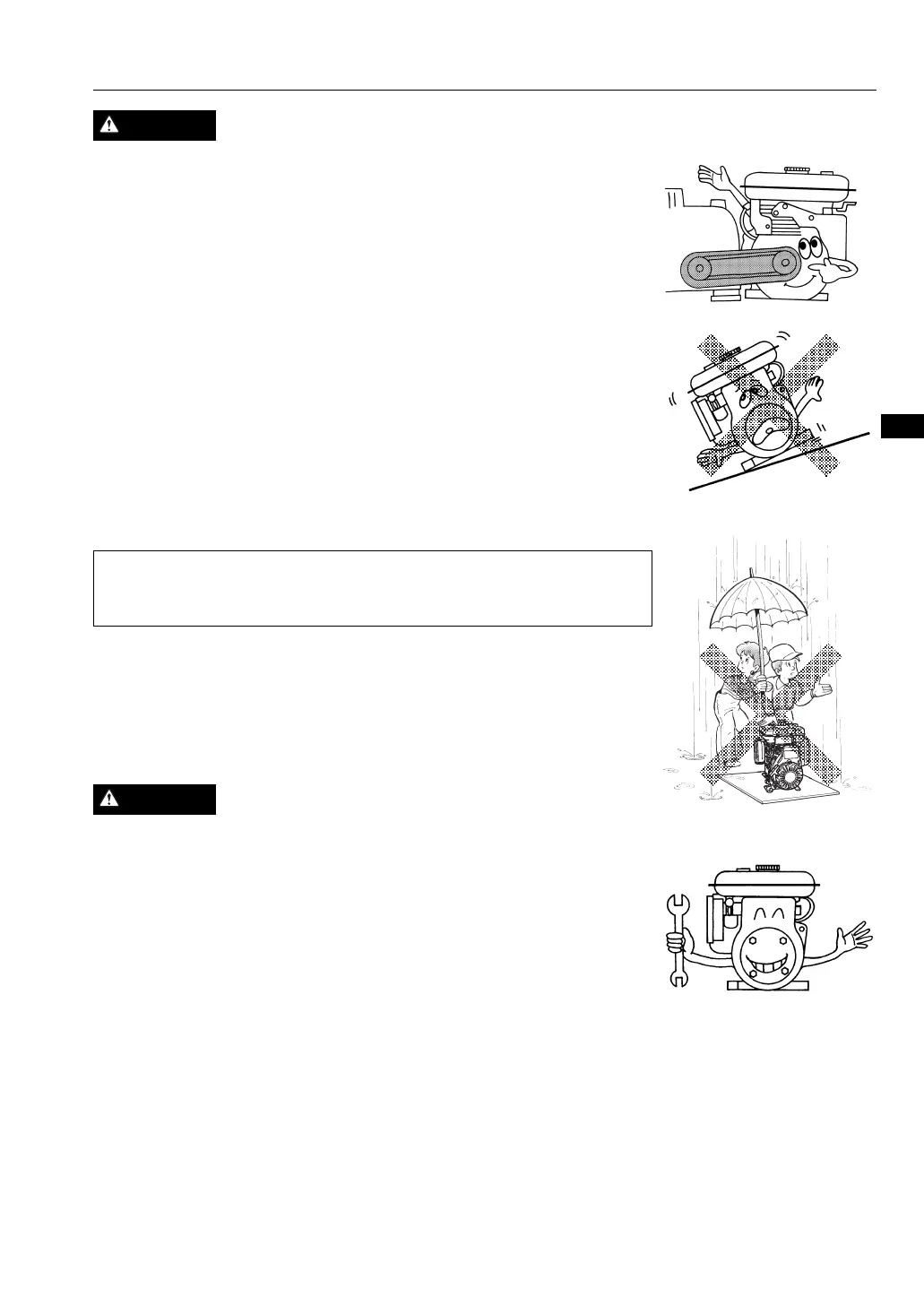 If rotating parts such as the drive shaft, pulley, belt, etc. are left exposed,