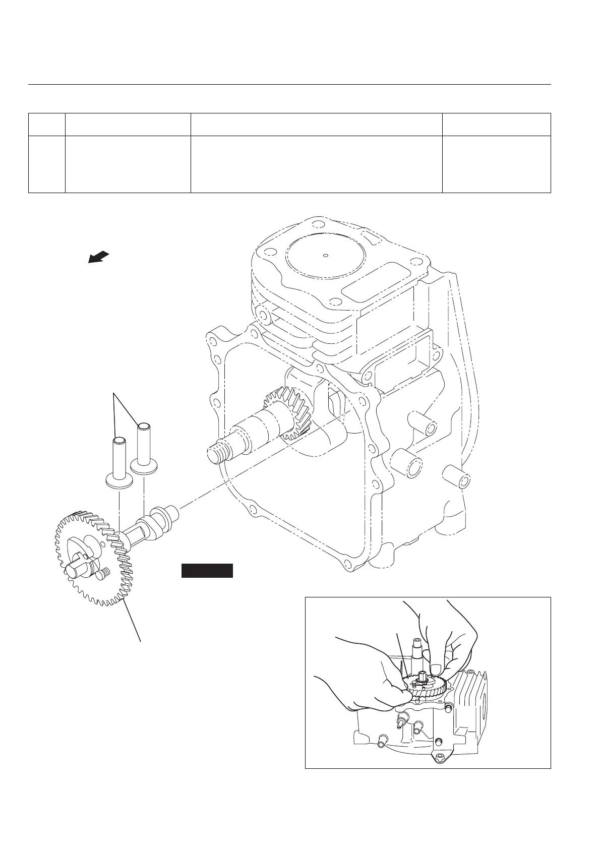 Camshaft and tappets Lay carnkcase on the flywheel side push tappets