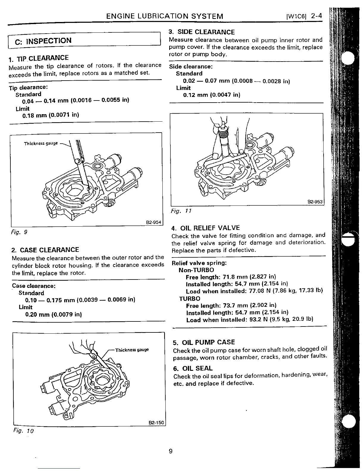 Subaru EJ22 - Tip Clearance;Case Clearance;Side Clearance Check; Oil Relief Valve Check; Oil Pump Case Check; Oil Seal Check