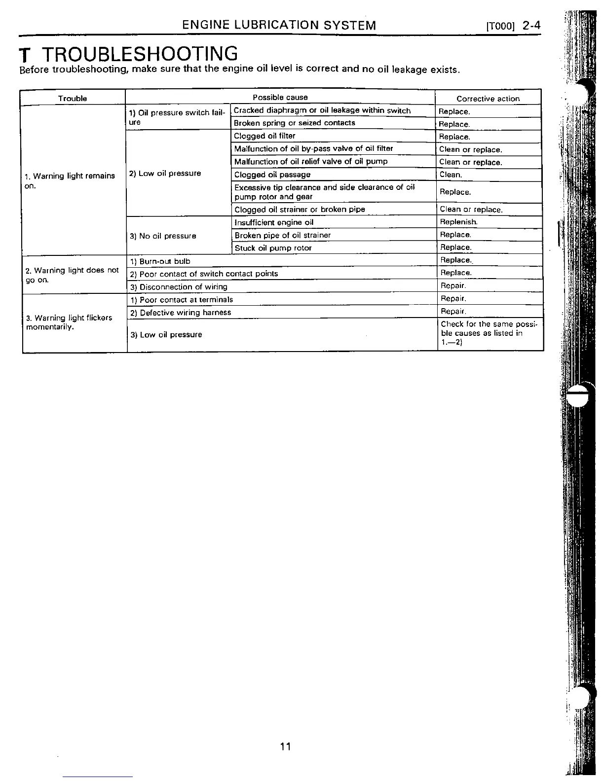 Subaru EJ22 - Engine Lubrication System Troubleshooting