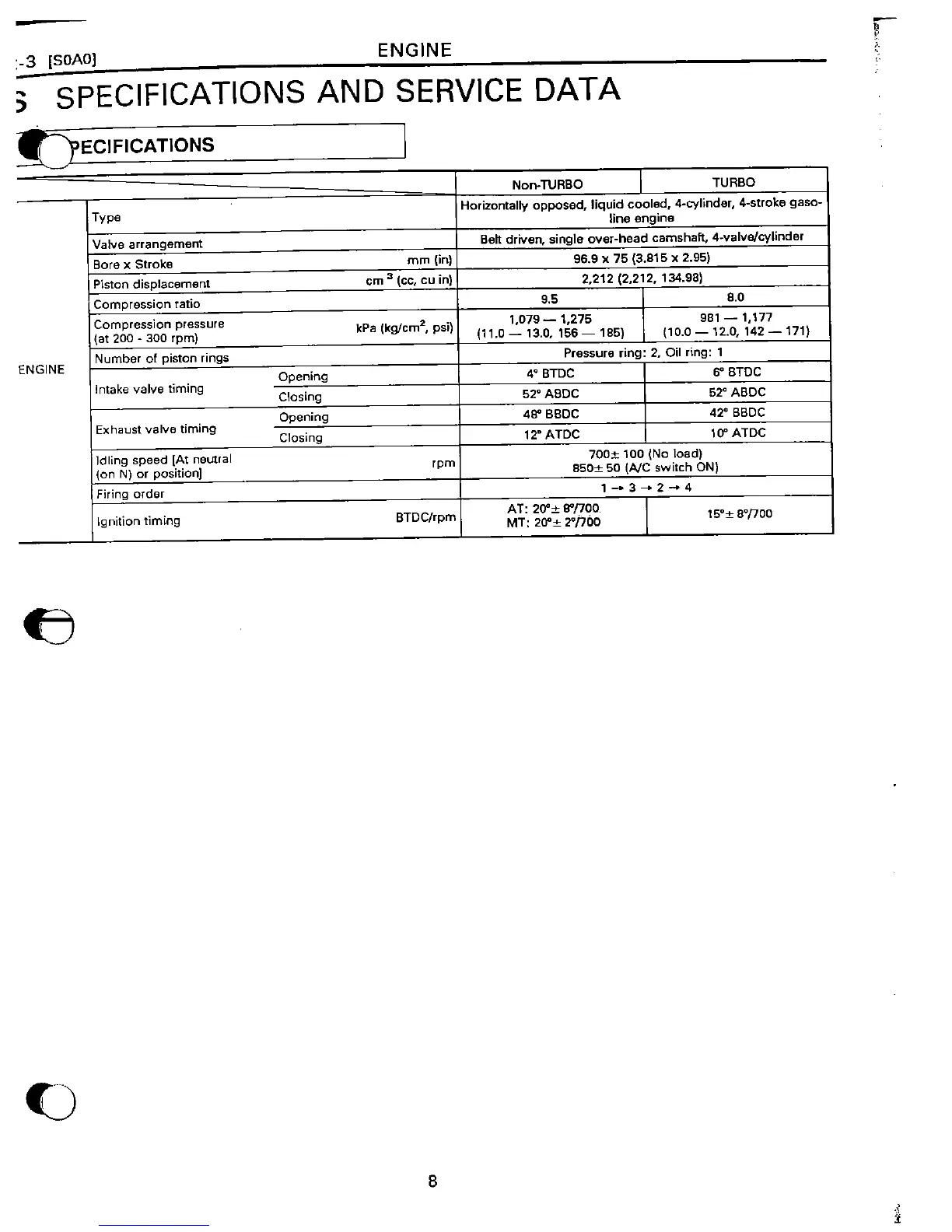 Subaru EJ22 - Engine Specifications