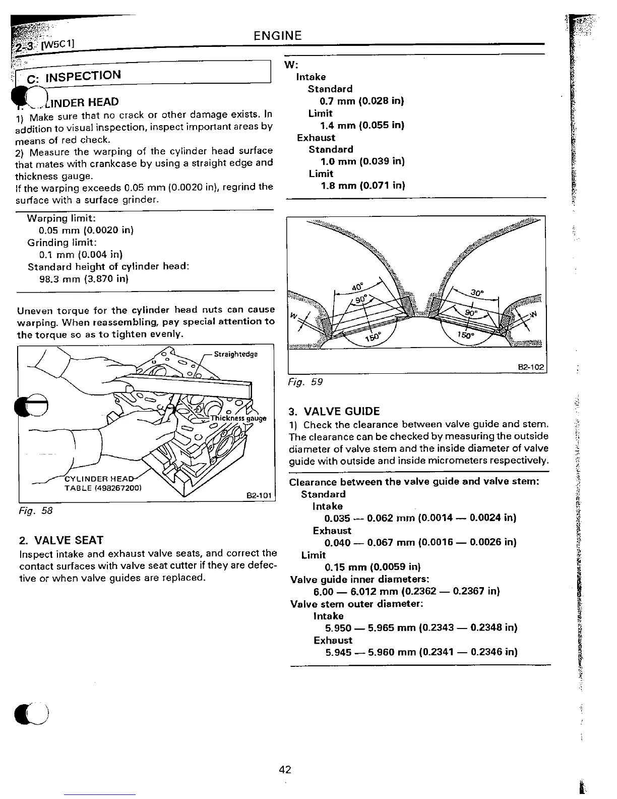 Subaru EJ22 - Cylinder Head Inspection; Valve Seat Check; Valve Guide Check