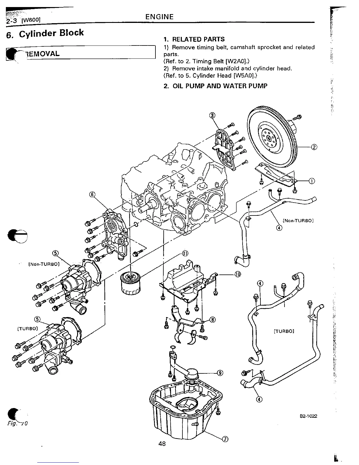 Subaru EJ22 - Cylinder Block Removal; Oil Pump and Water Pump Removal
