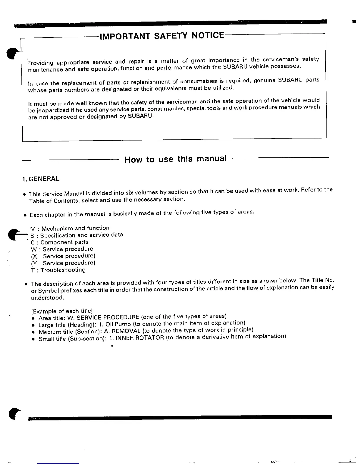 Subaru EJ22 - Important Safety Notice; How to Use this Manual