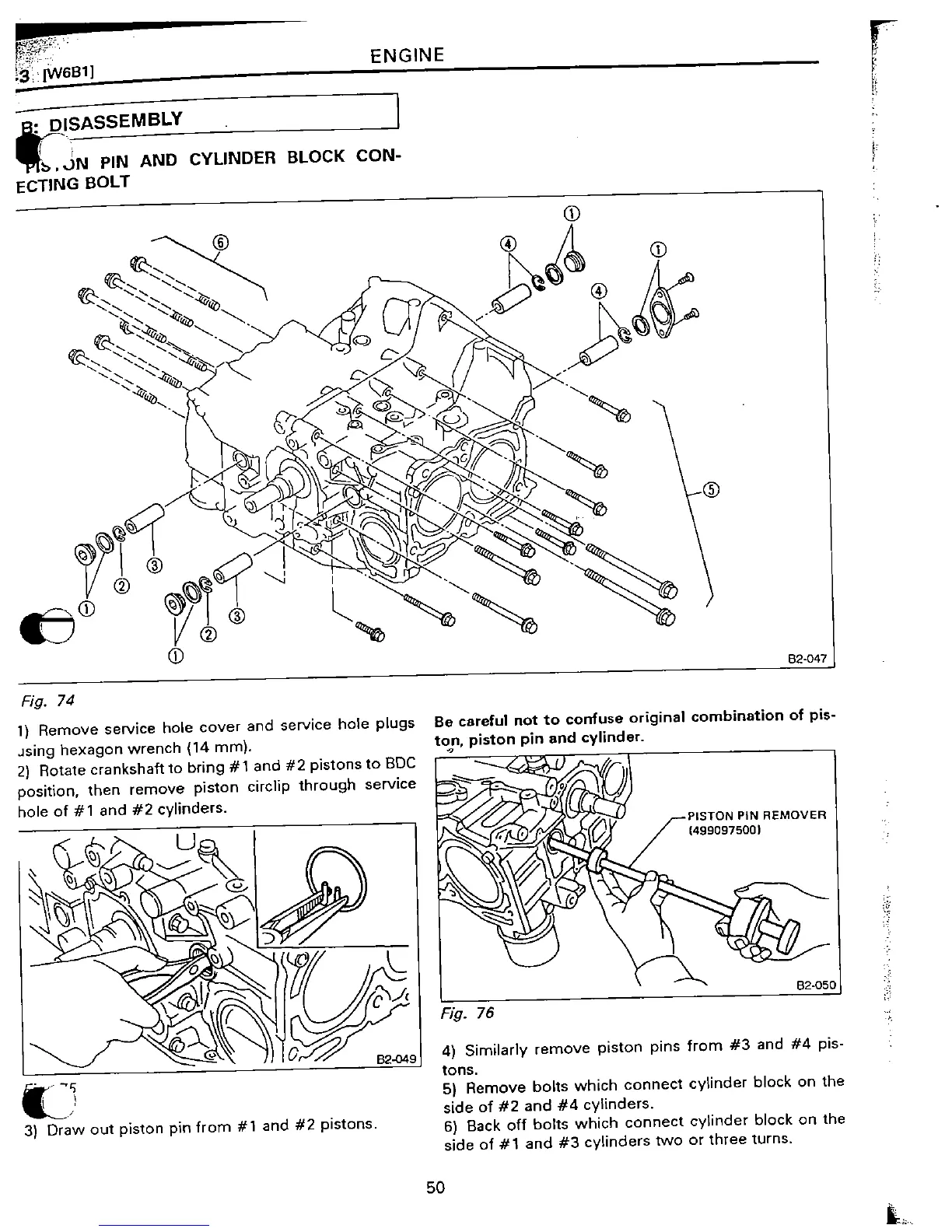Subaru EJ22 - Piston Pin and Cylinder Block Connecting Bolt Disassembly