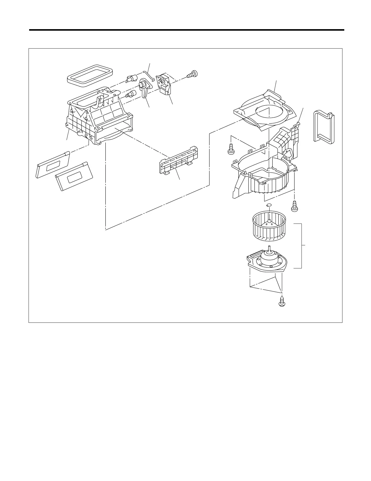 (2) Air inlet select actuator (5) Filter cover (8) Blower motor ASSY