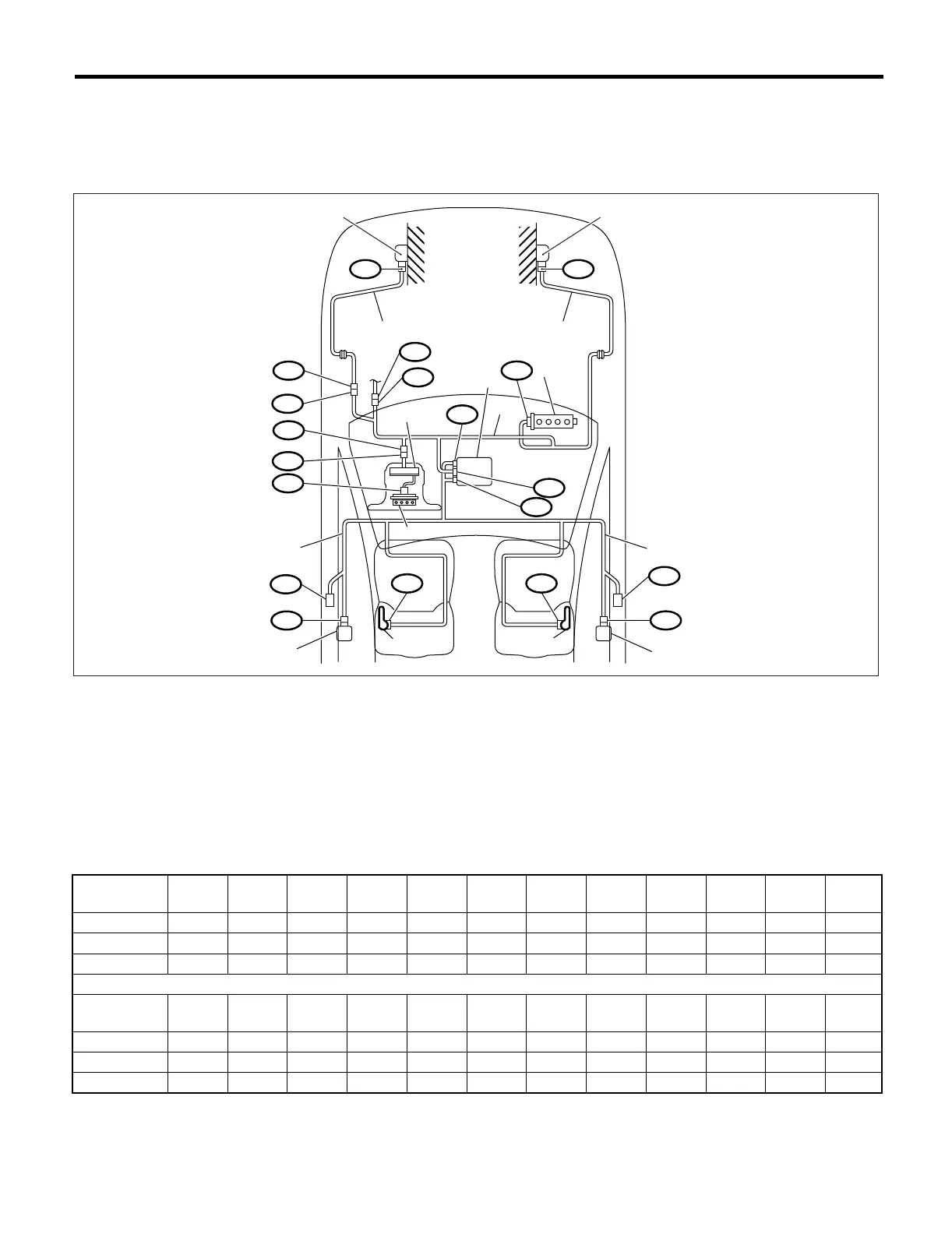 (3) Front sub sensor harness (LH) (8) Airbag main harness (14) Side airbag inflator (LH)