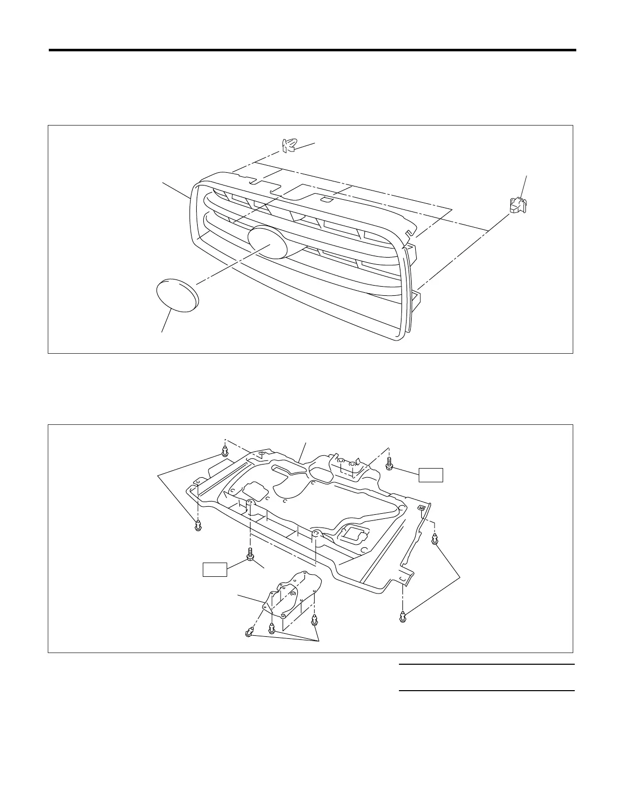 (1) Front grille (3) Clip (4) Hook
