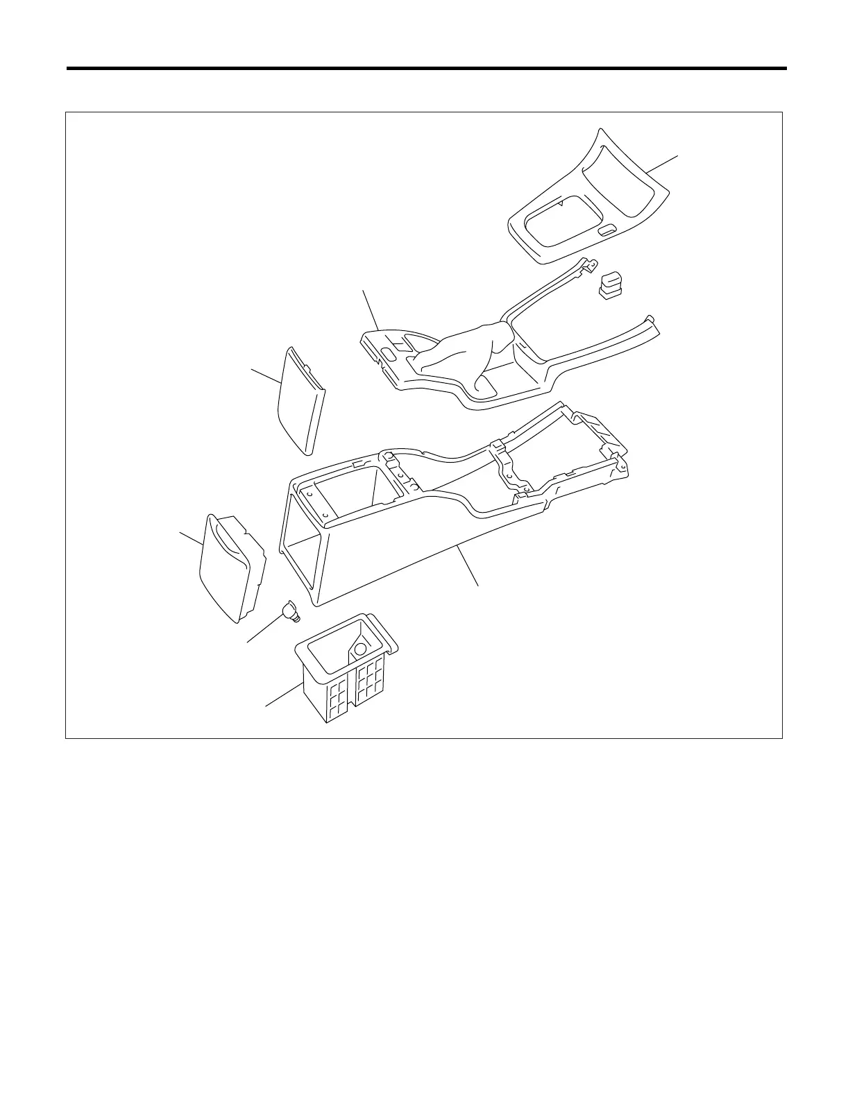 (1) Rear cup holder (4) Console front cover (7) Accessory socket