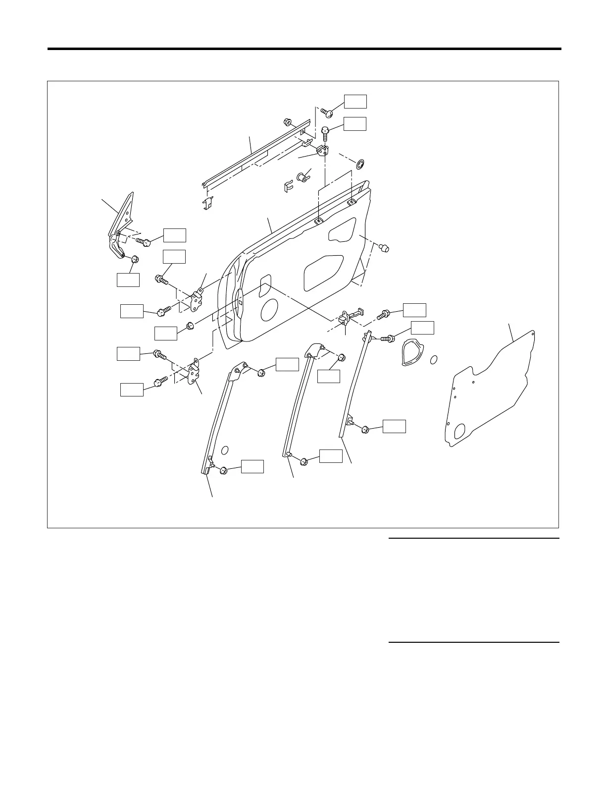 (2) Weather strip (10) Key cylinder (Driver’s side only) T1: 7.5 (0.76, 5.5)