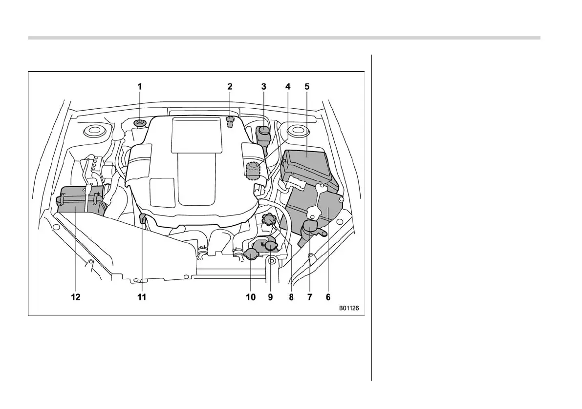 9) Engine coolant reservoir (page 11-