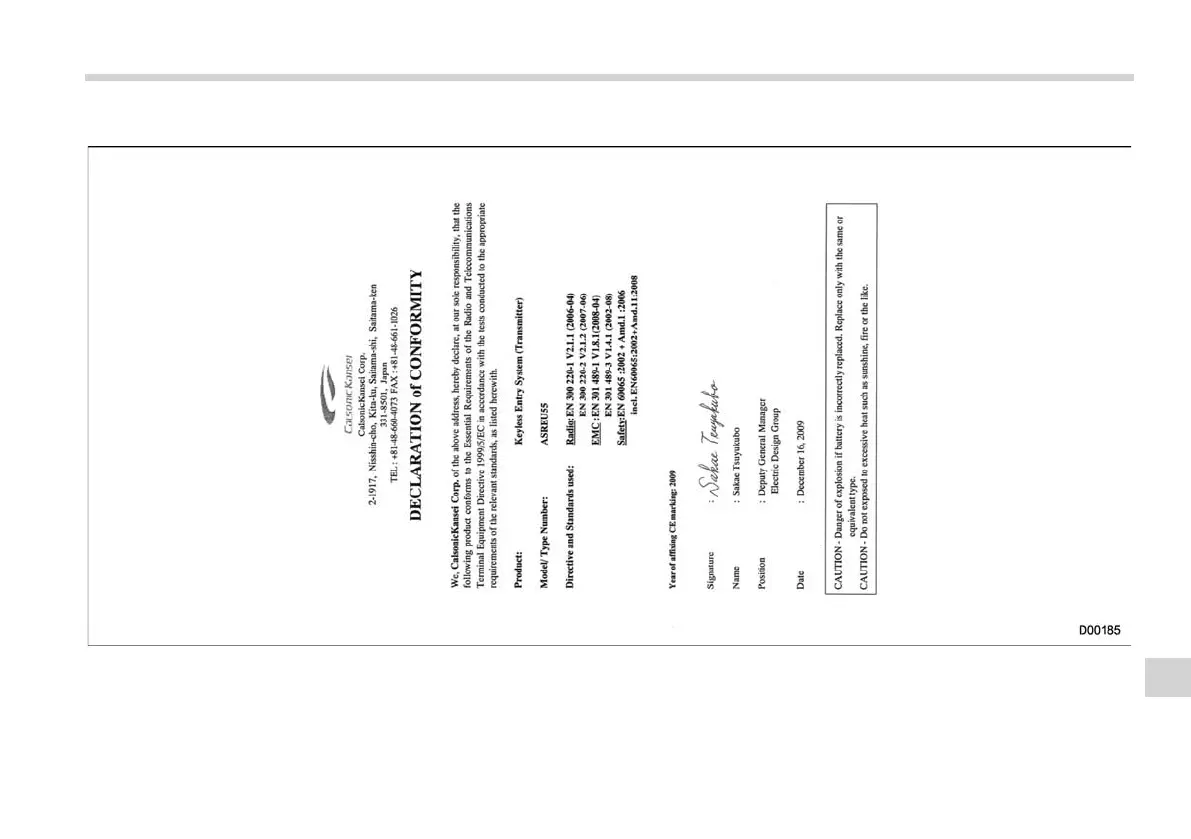 Subaru FORESTER 2012 - Transmitter for Keyless Entry System (Right-Hand Drive Models)