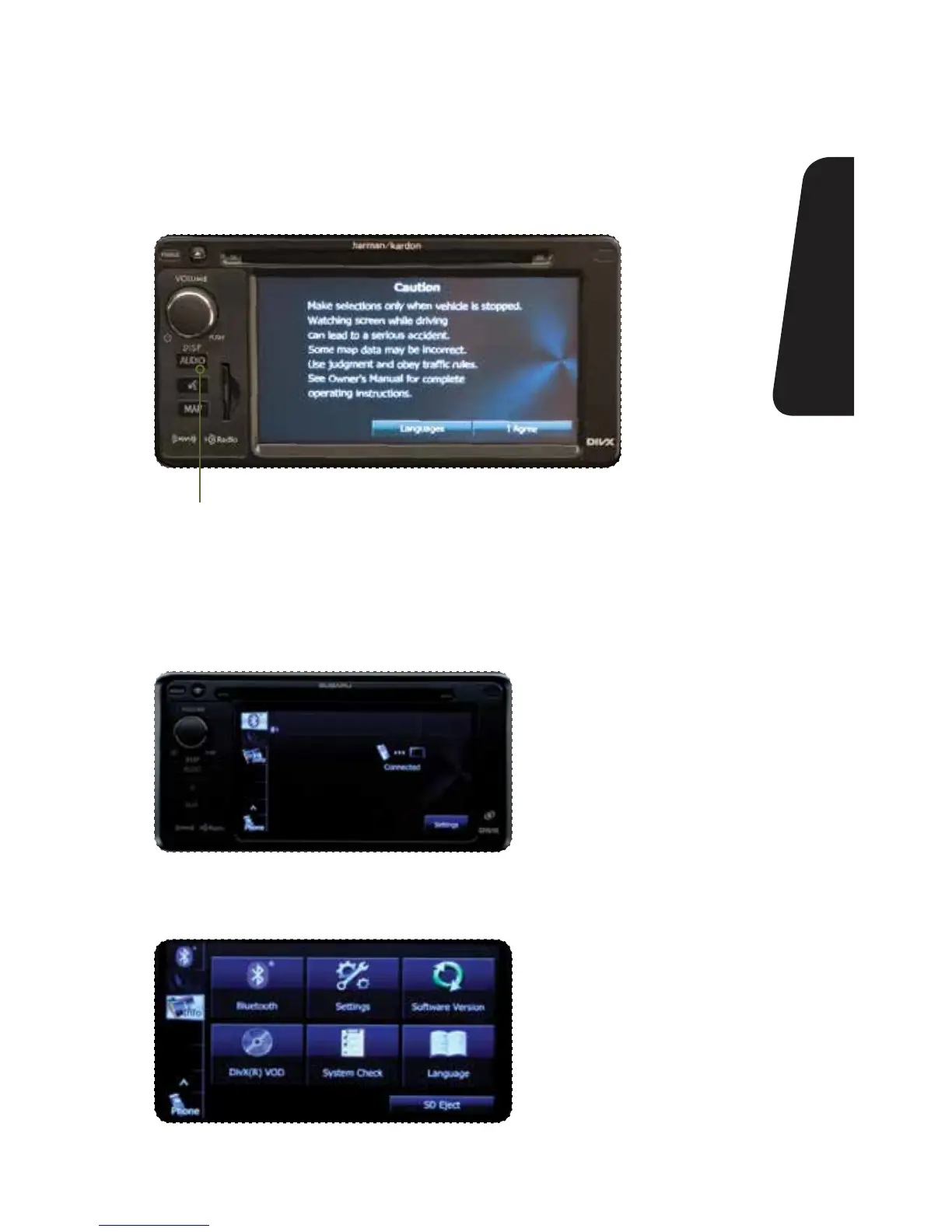 PresstheAUDIObutton;thentouchthe“Info”softkeyonthetouchscreen.
