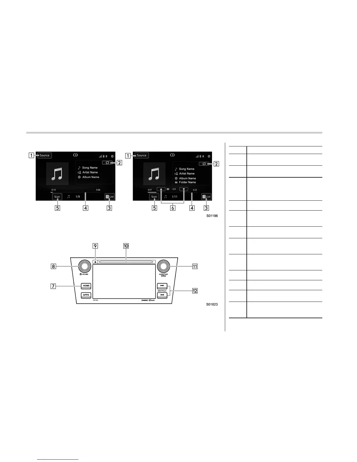 Left: Audio CD, Right: MP3/WMA/AAC disc
