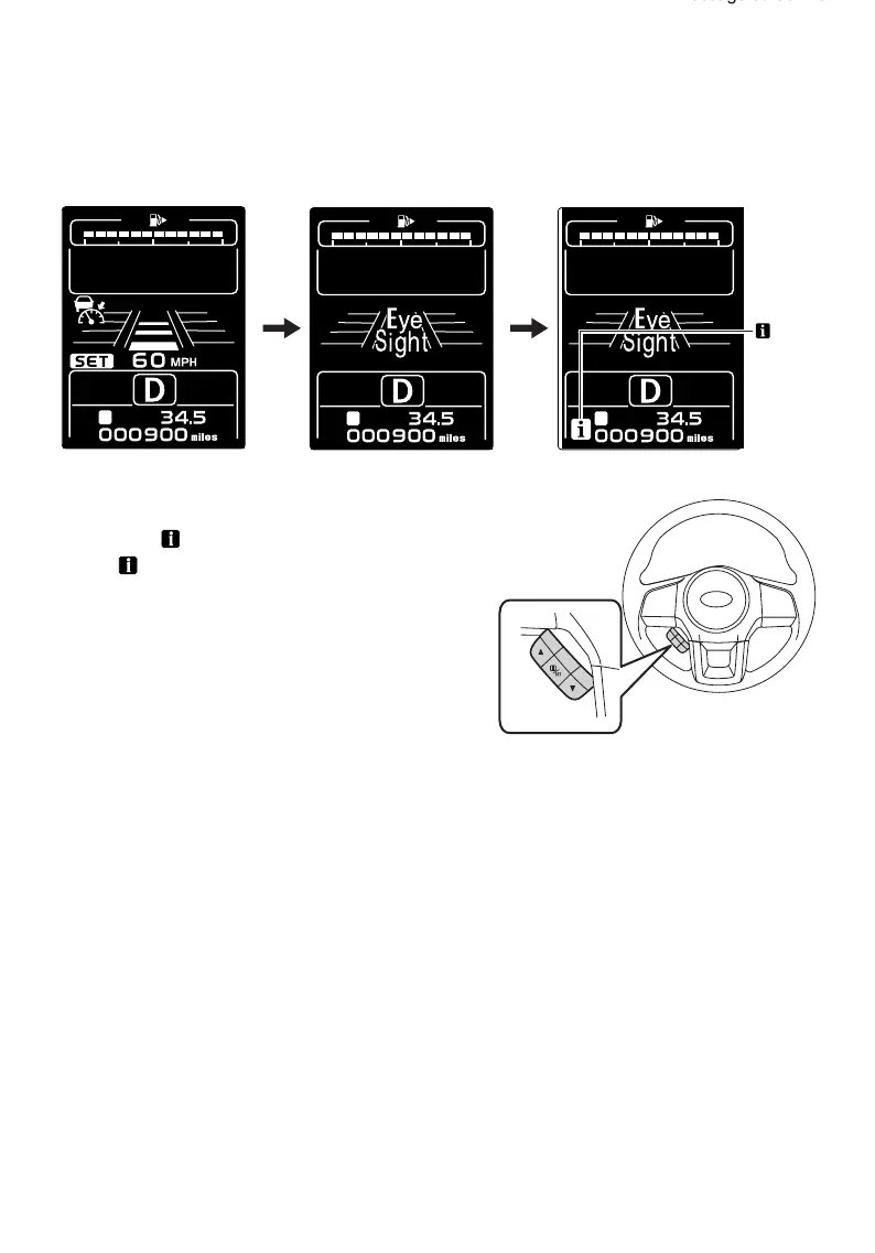 If an EyeSight warning or malfunction is detected, a message will be displayed on the