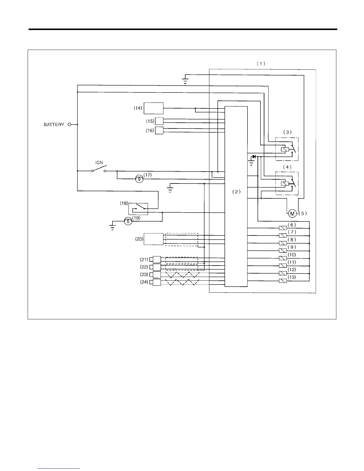 (4) Motor relay (13) Rear right outlet solenoid valve (21) Front left ABS sensor