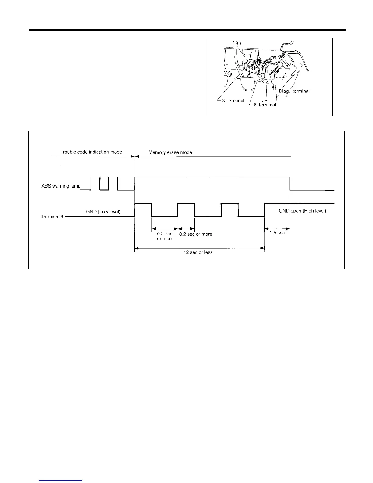 2) Repeat 3 times within approx. 12 seconds; connecting and disconnecting terminal 6 and diagnosis termi-