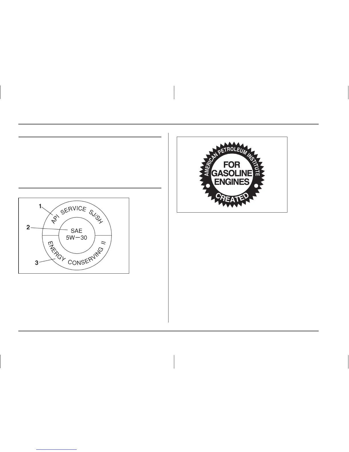1) Indicates the oil quality by API designa-