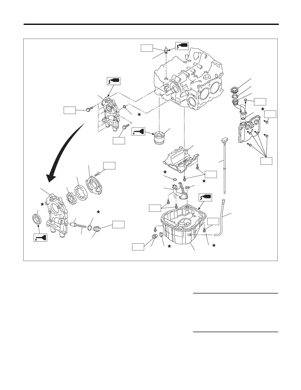 (9) Oil pump cover (21) Oil level gauge guide T4: 44 (4.5, 32.5)