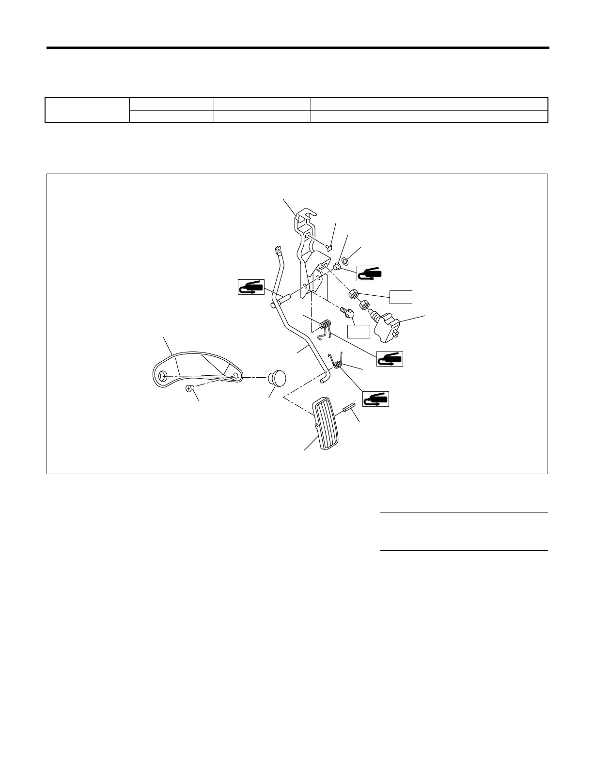 (1) Accelerator bracket (7) Accelerator pedal lever (13) Kick-down switch (AT model)