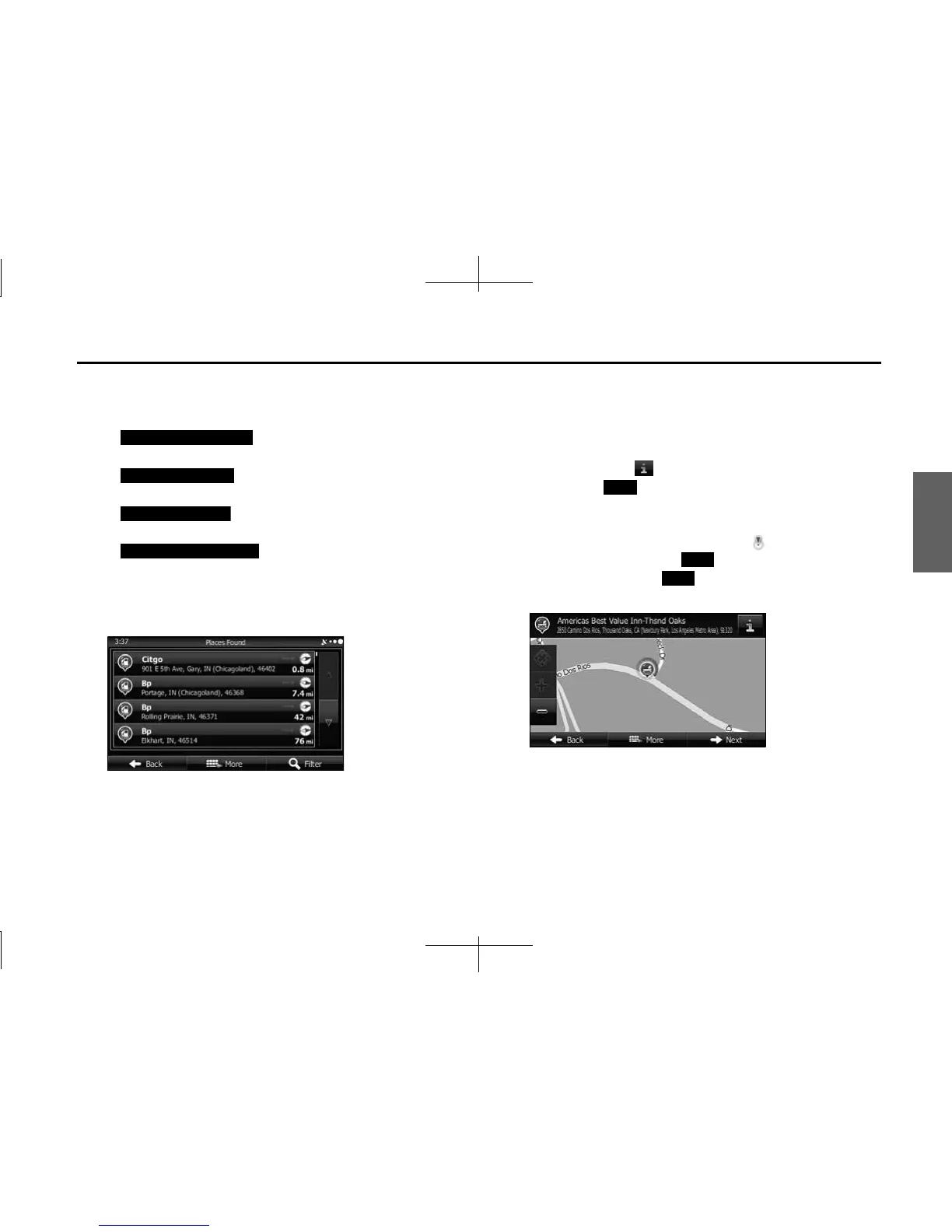 destination, or touch (Back) to select another
