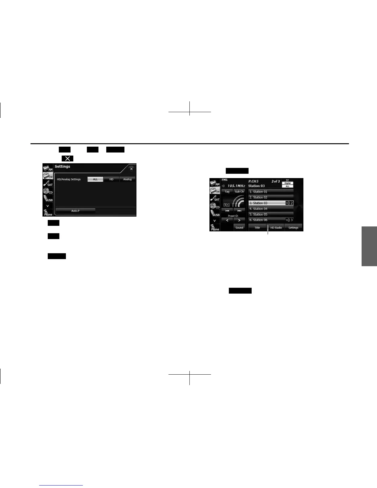 • Touch (HD Radio) to switch between ON and OFF.