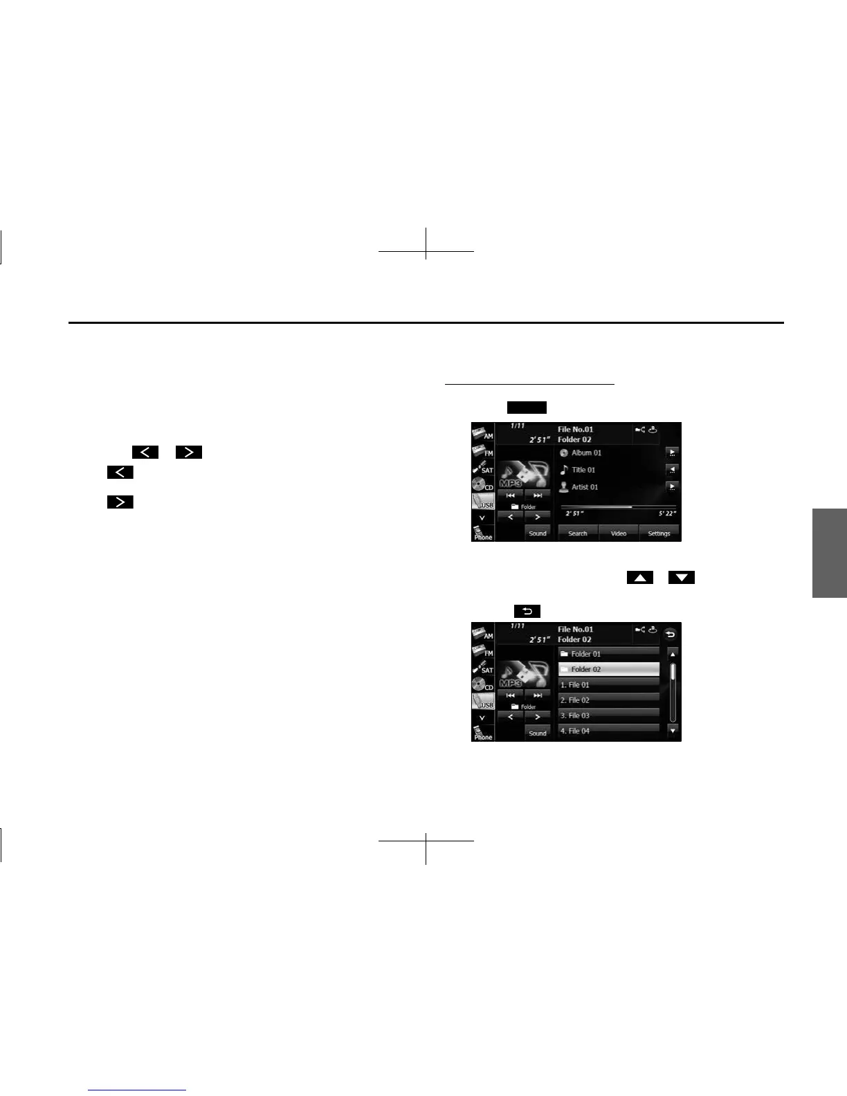 If no MP3/WMA files exist in the folder, “No Data” appears in the section where