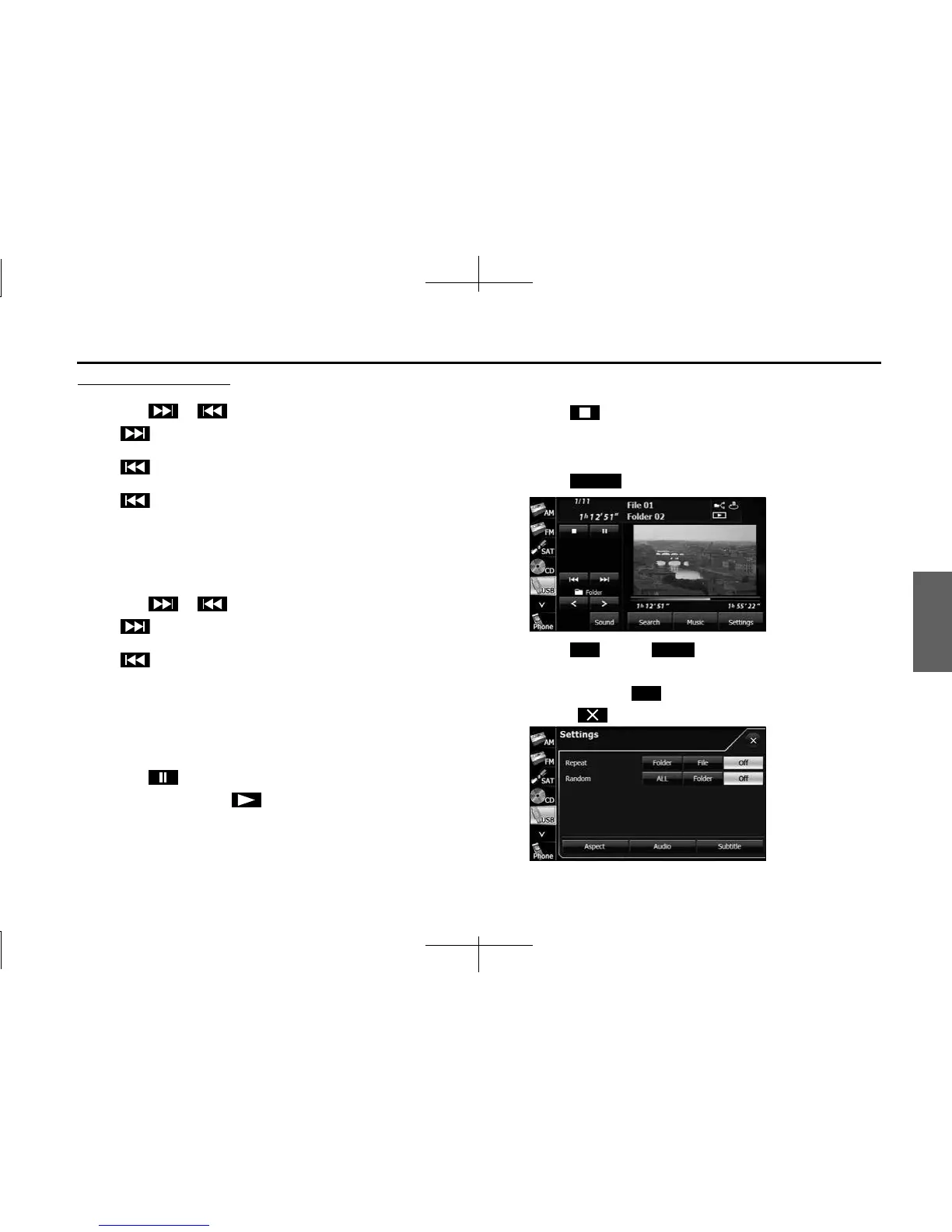 • Repeat playback is set for the currently playing file or folder.