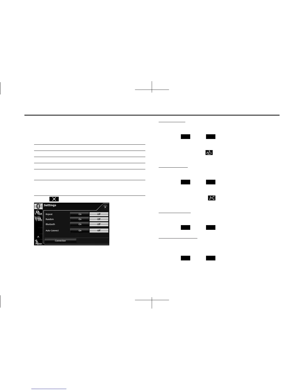 Repeat Set repeat playback to on or off.