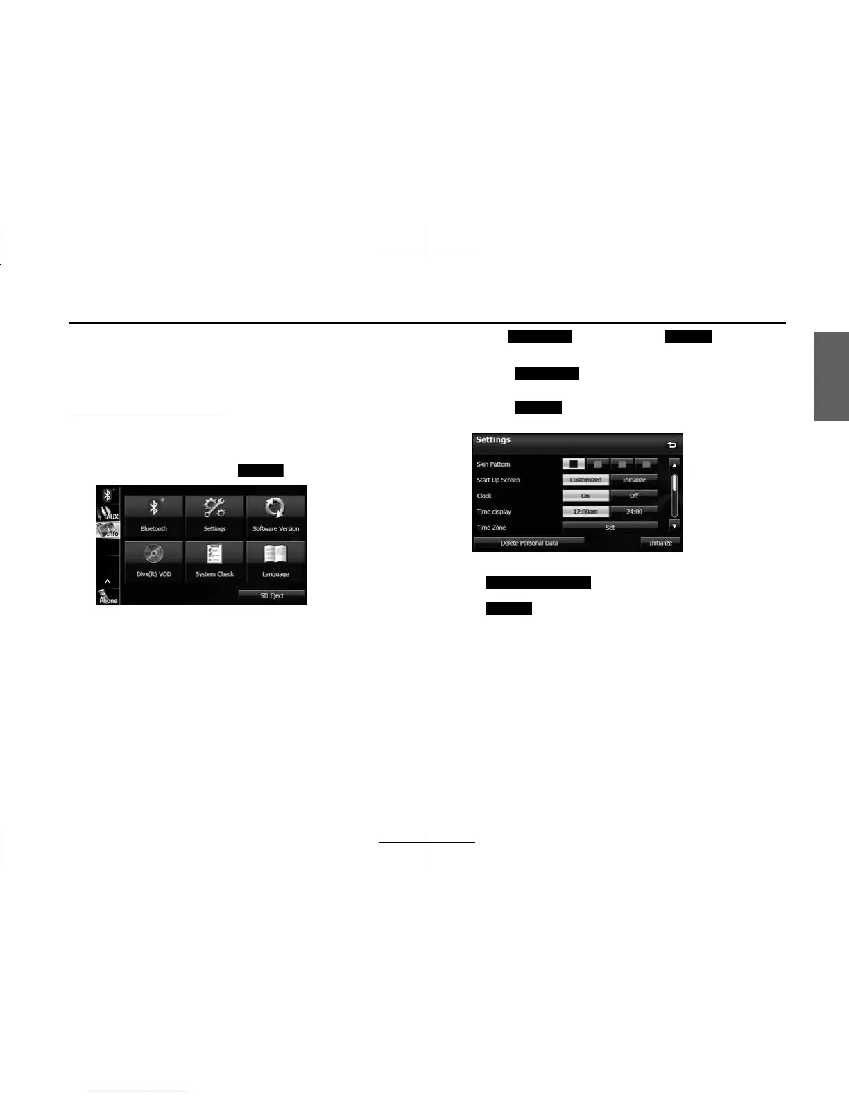 • Touch (Initialize) to return the settings in the Settings screen to
