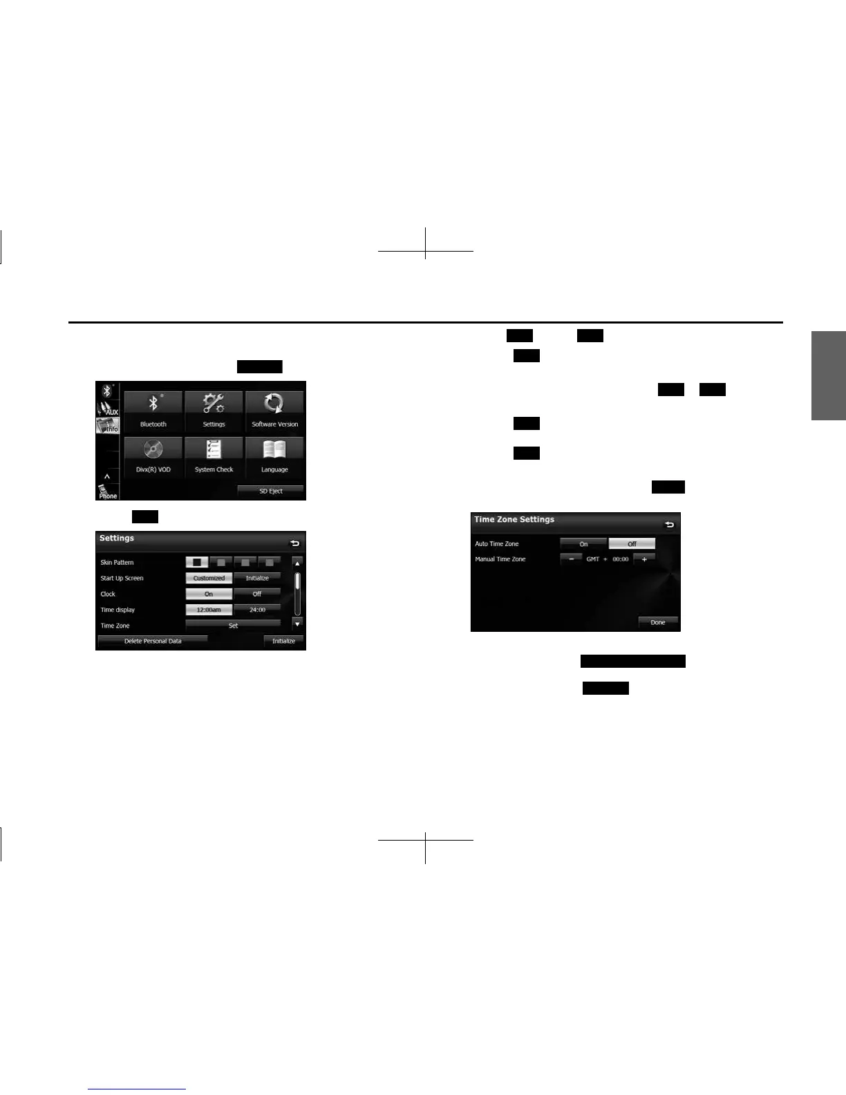 • Touch (On) in Auto Time Zone to set the time zone