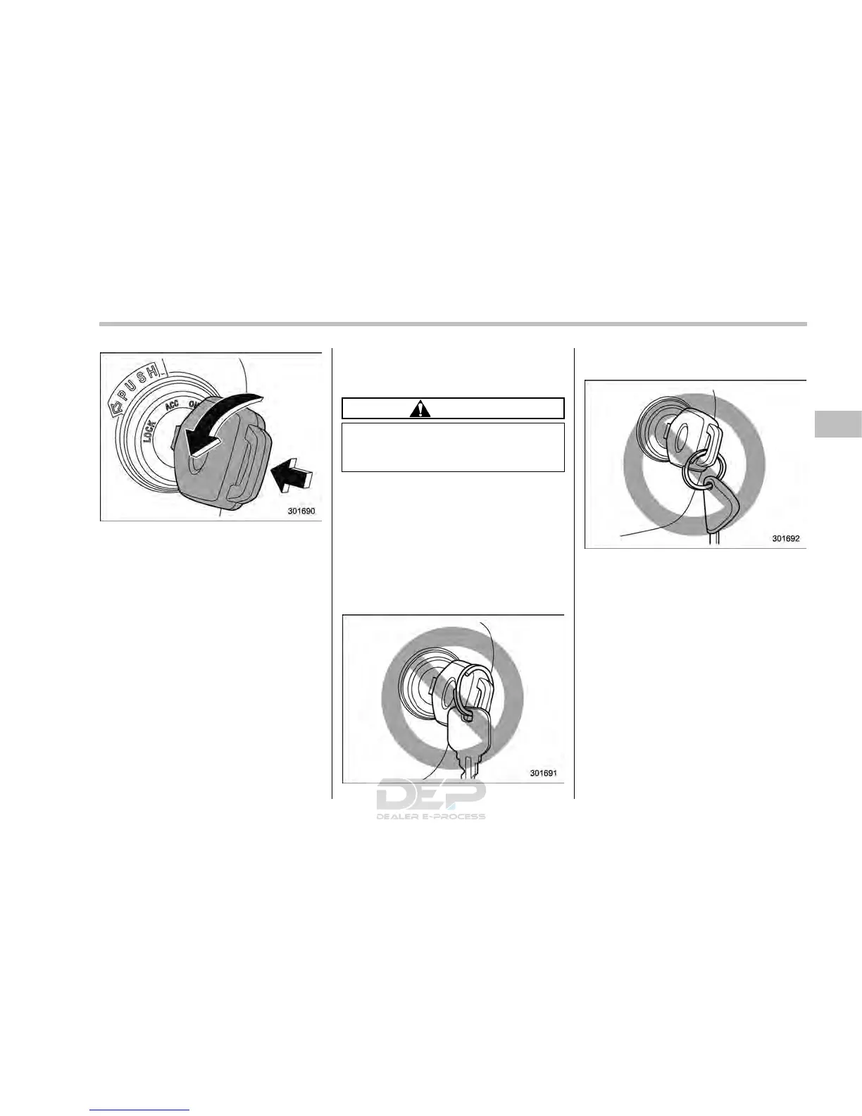 Instruments and controls/Ignition switch (models without “keyless access with push–button start system”)