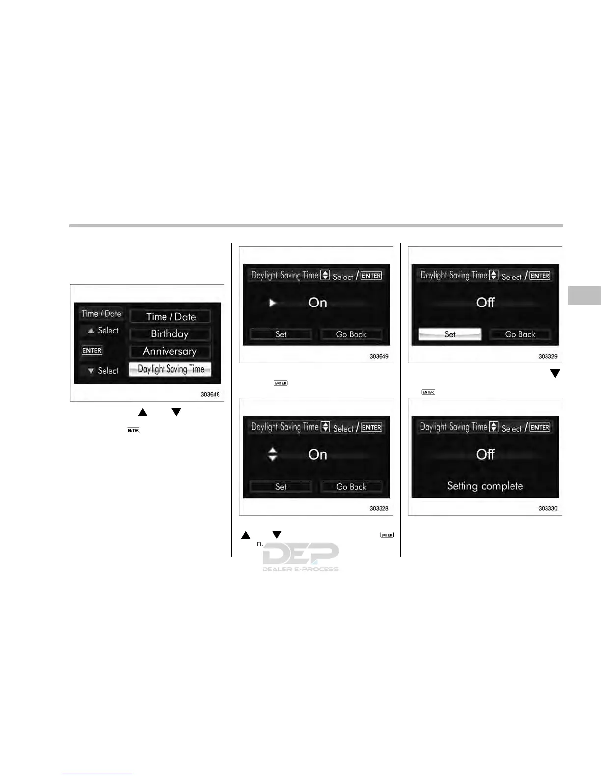 4. Select “On” or “Off” by operating the