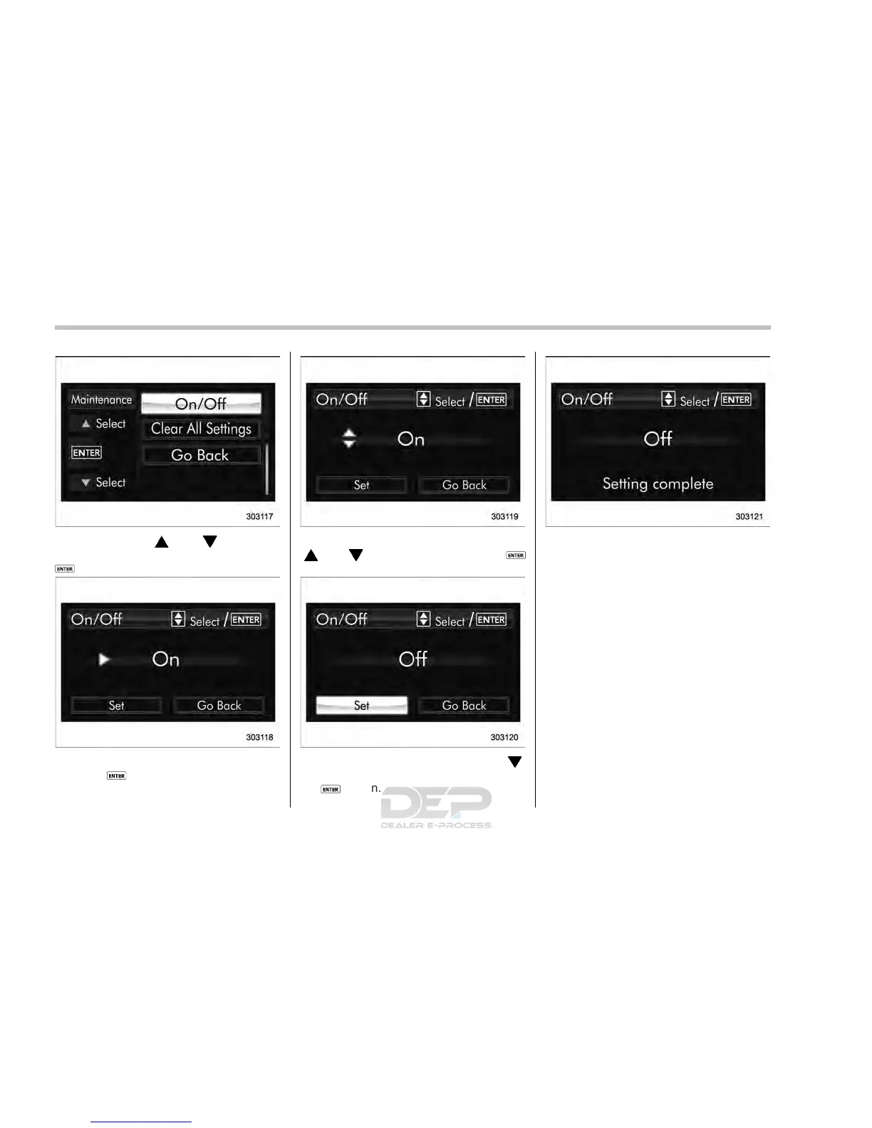 4. Select “On” or “Off” by operating the