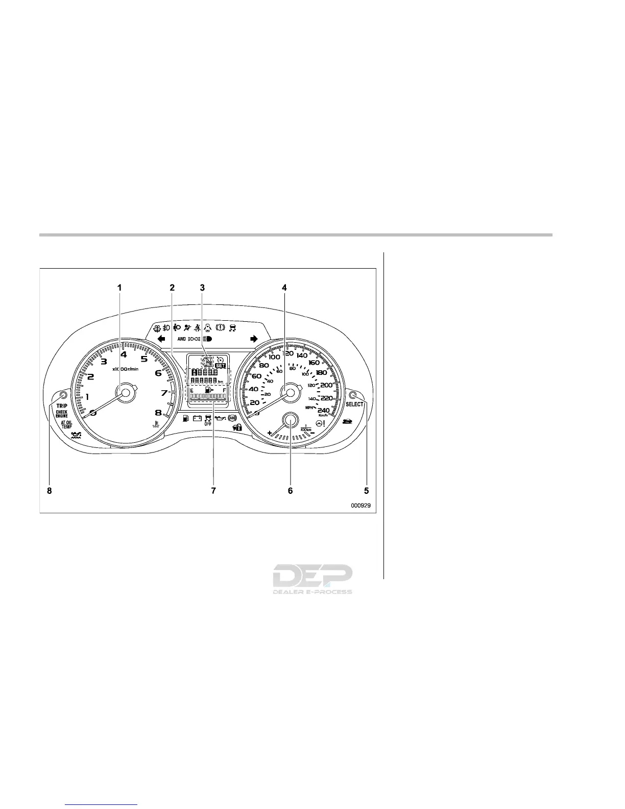 The illustration above is a typical example. For some models, the combination meter