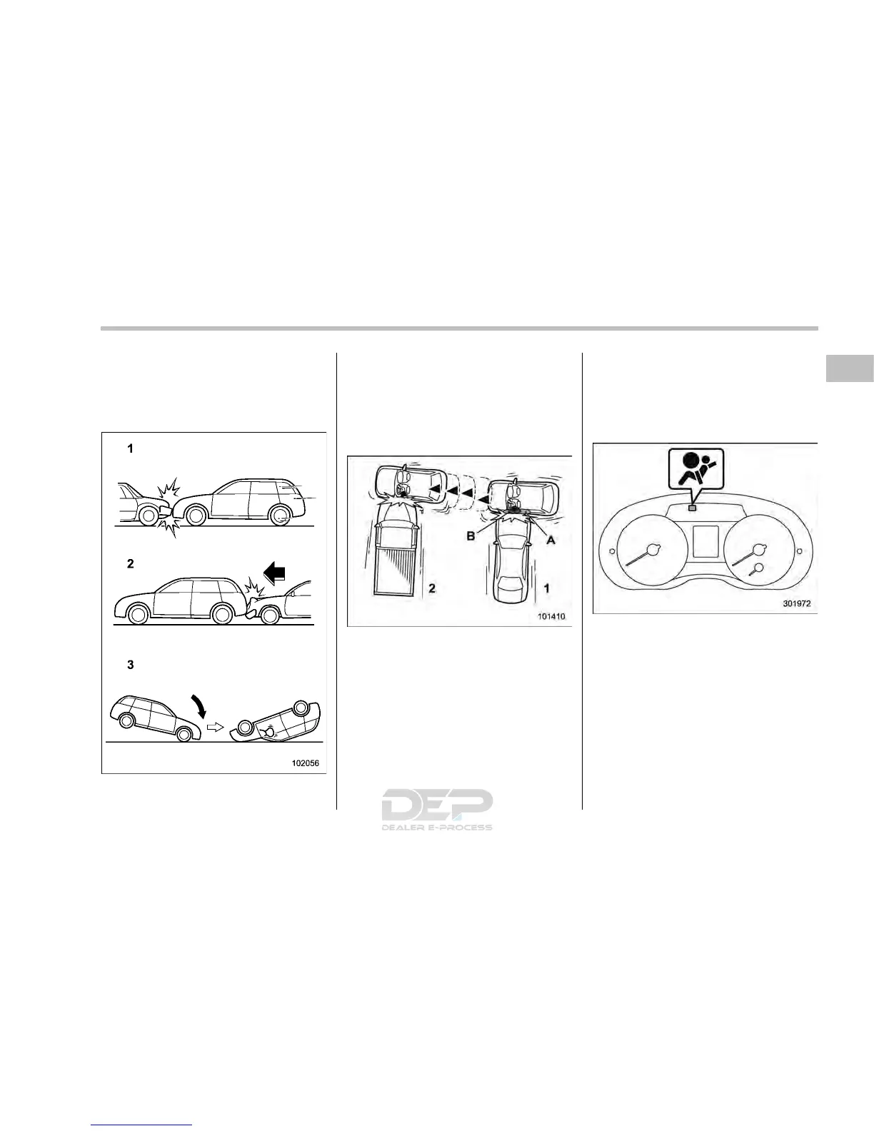 1) The vehicle is involved in frontal collision