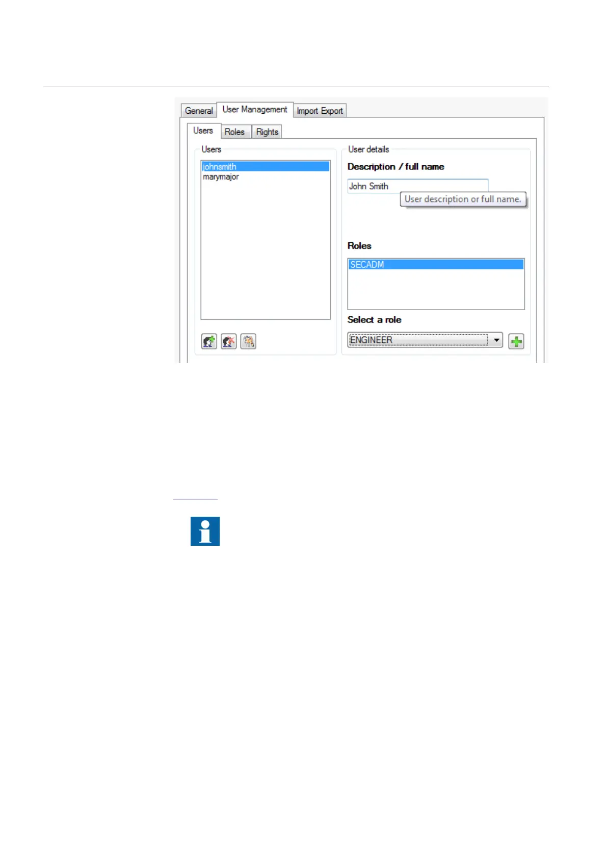 areas of the IED and tools functionality. The pre-defined user types are given in