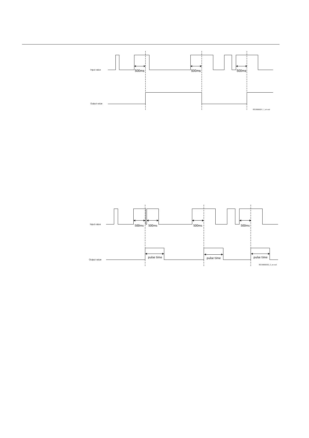 Note that the third positive edge on the input attribute does not cause a pulse, since