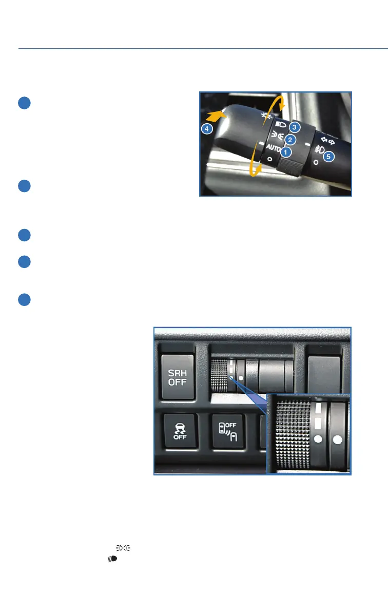 5 Fog Lights: If equipped, rotate the dial to turn on the fog lights.