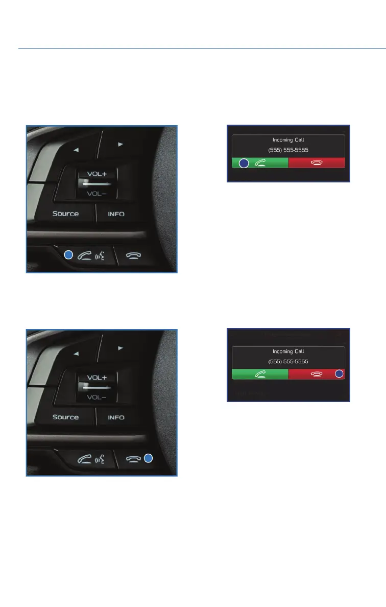 To reject a call, press the “End Switch” on the steering wheel or the “End Button” on the