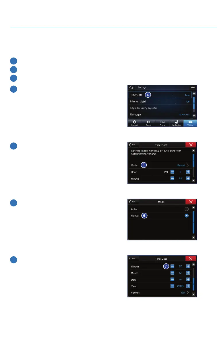 7 Now adjust the time and date using the “+” and