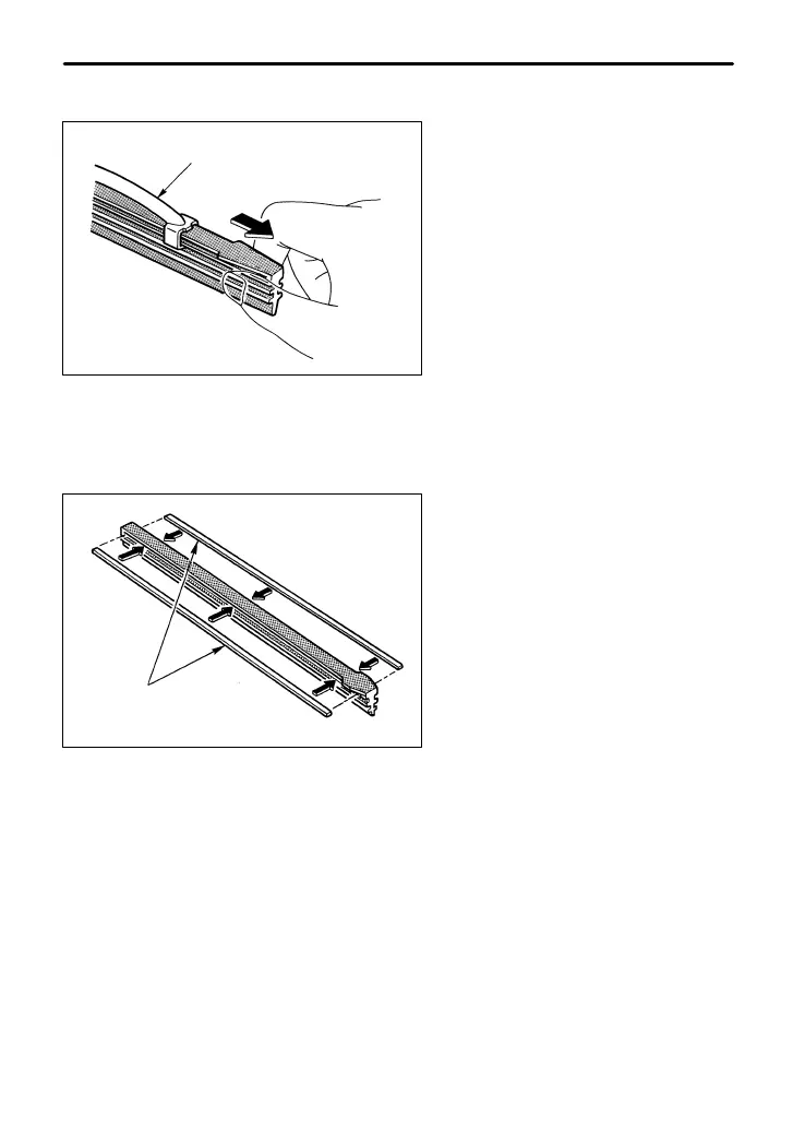 4. If the new blade rubber is not provided with two metal spines, remove