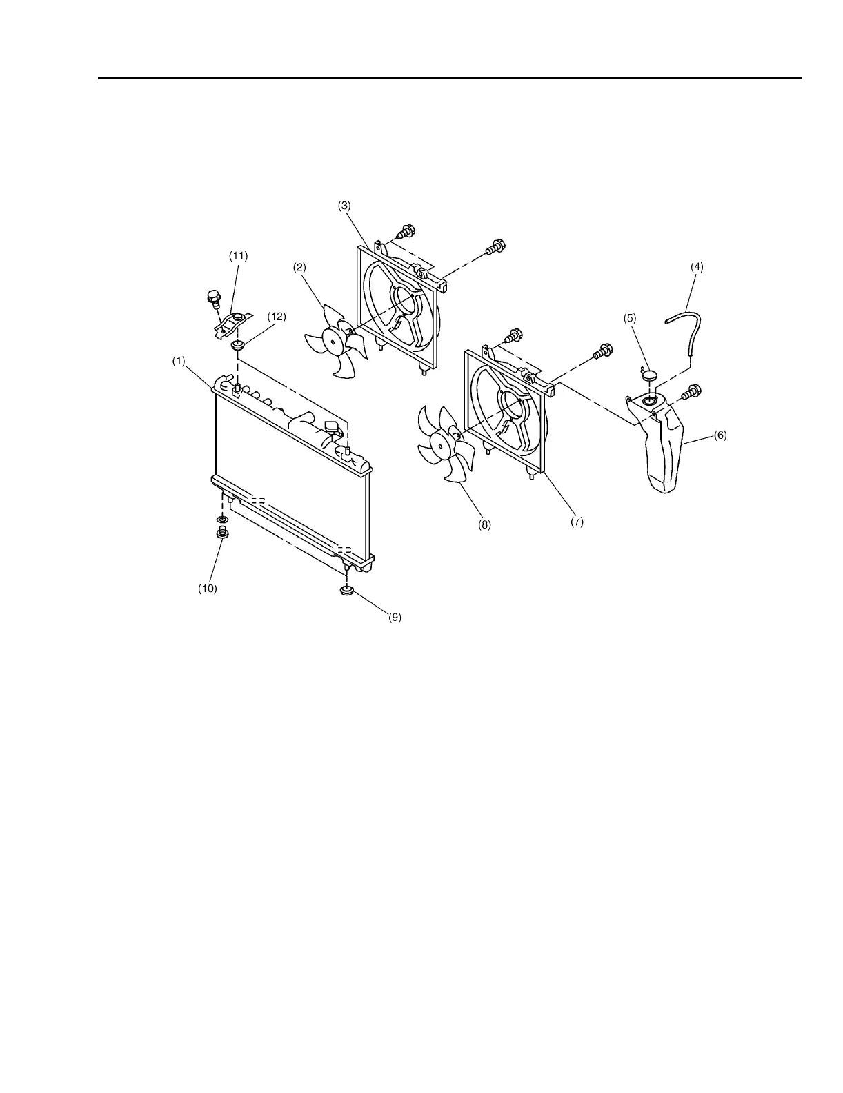 (1) Radiator (8) Radiator main fan and fan motor assembly